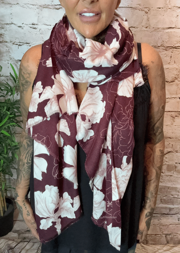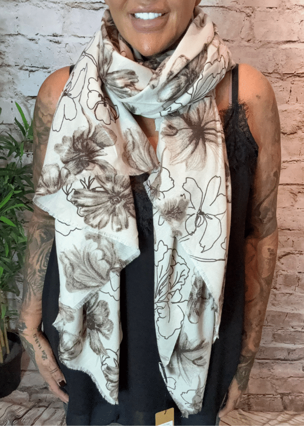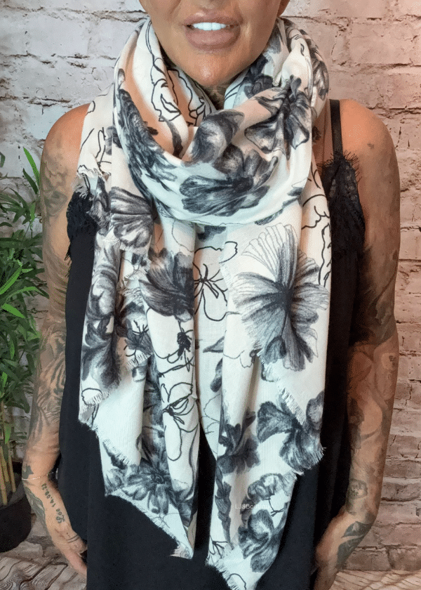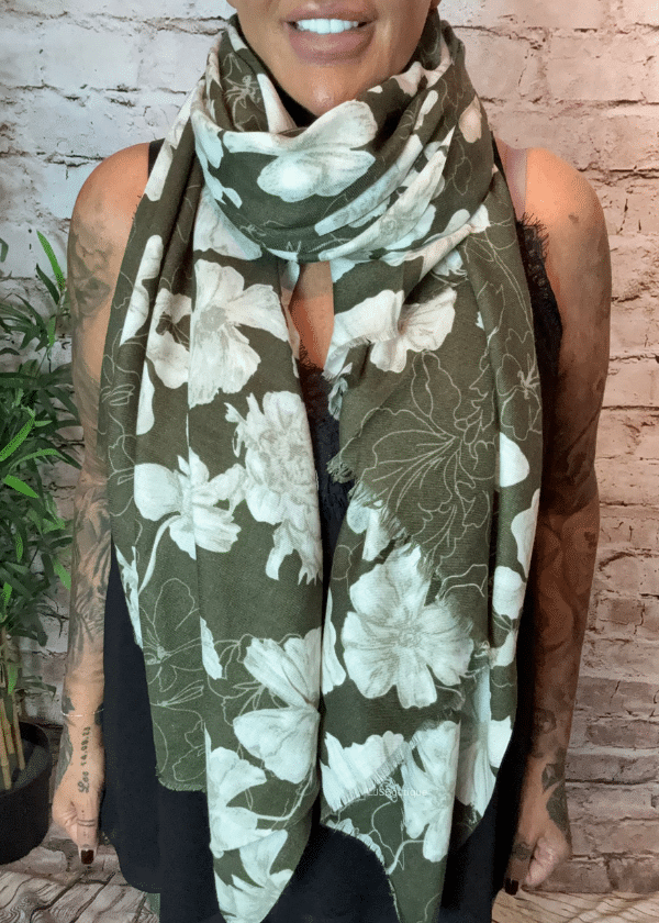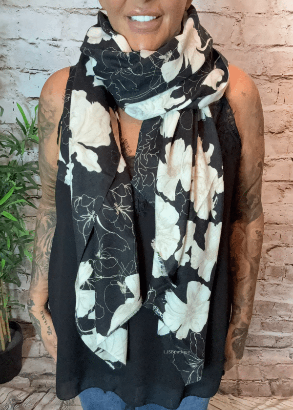 The scarf features a stunning floral print that adds a modern, stylish twist to any outfit. Crafted from high-quality, durable materials