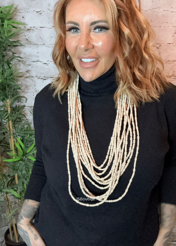 a beautiful and unique beige layered cord necklace that will compliment many outfits.