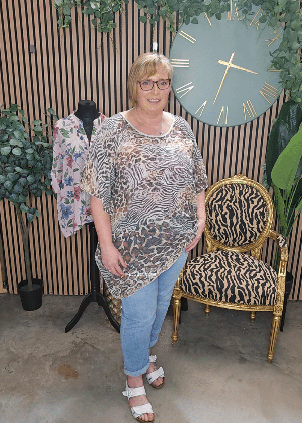 The stylish Nala top is back for a limited time only, featuring an all-over animal print that adds a fun and eye-catching touch to your outfit.