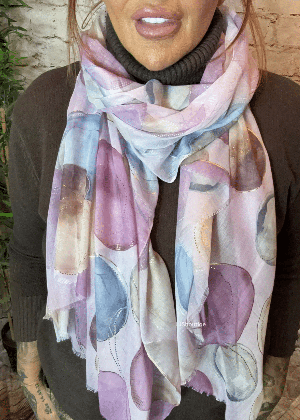 This elegant Scarf features a beautiful Bubble print, that adds a touch of sophistication to any outfit. adds a modern, edgy twist to any outfit.