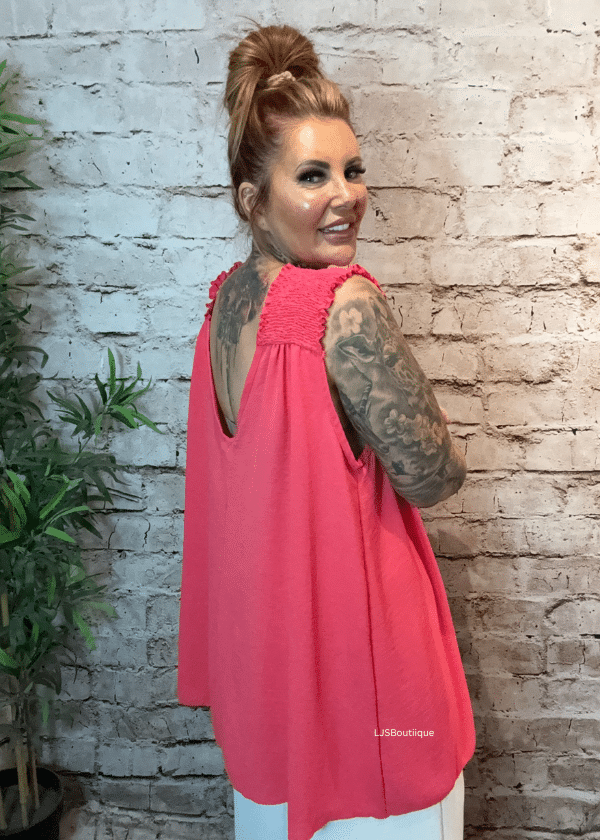 Featuring a flattering V-neckline and stylish shirred straps, it offers a feminine and easy-to-wear fit that suits a variety of body shapes.