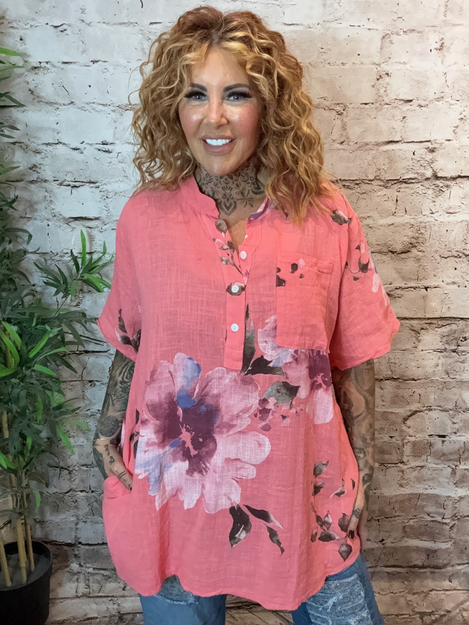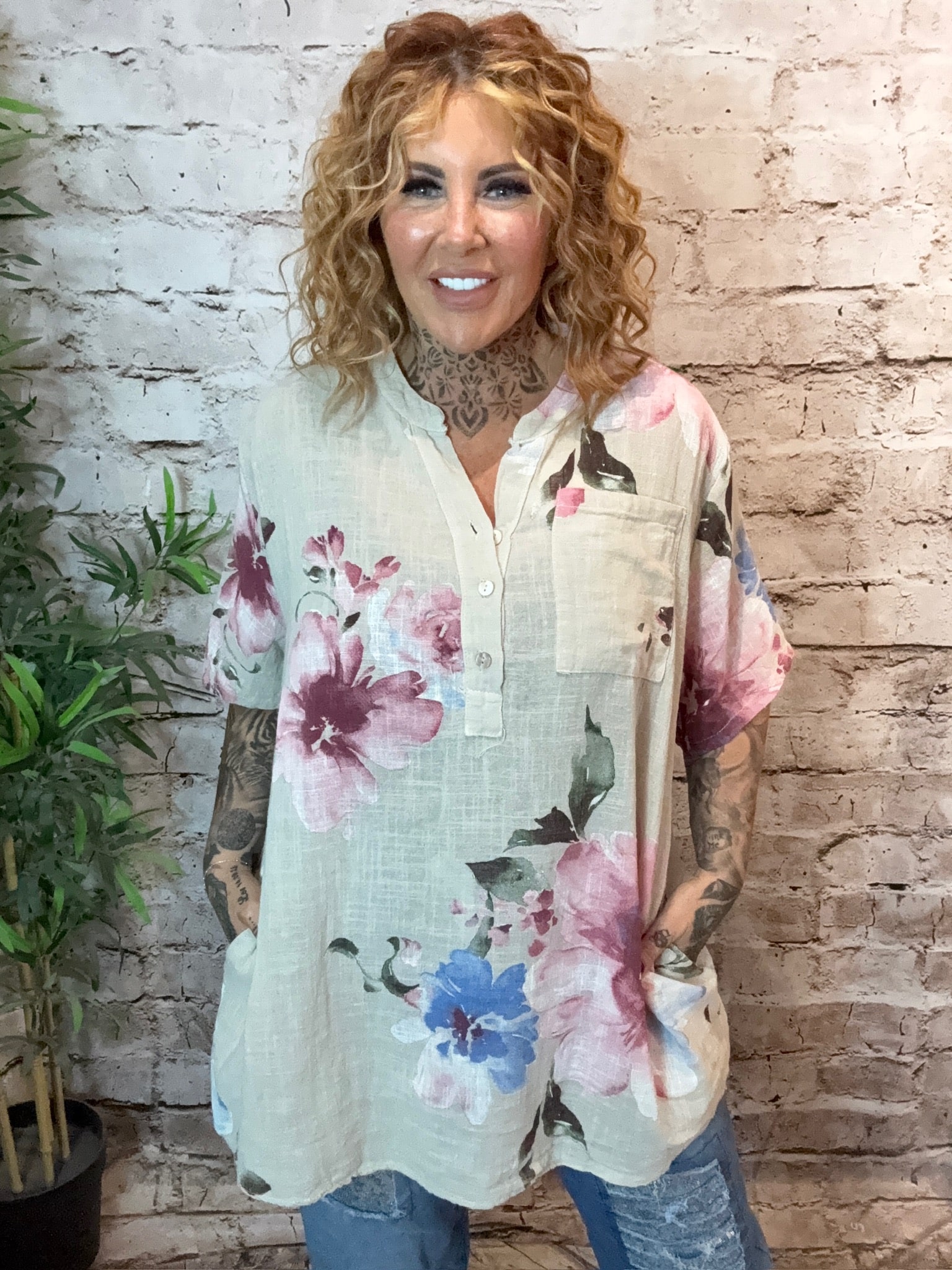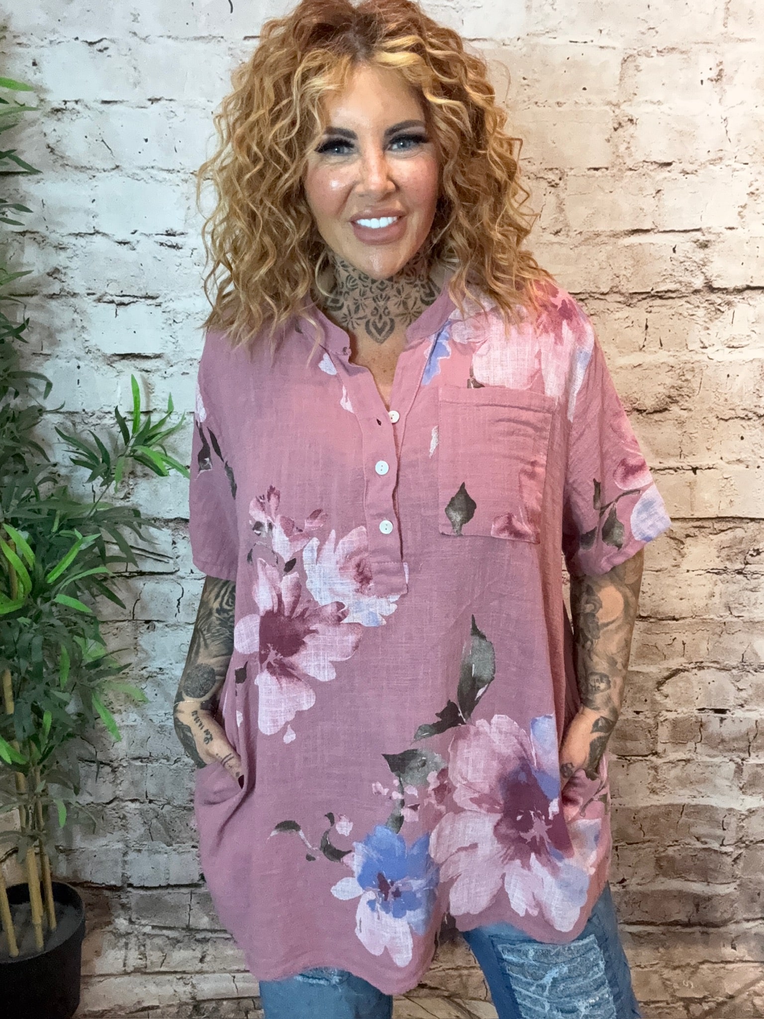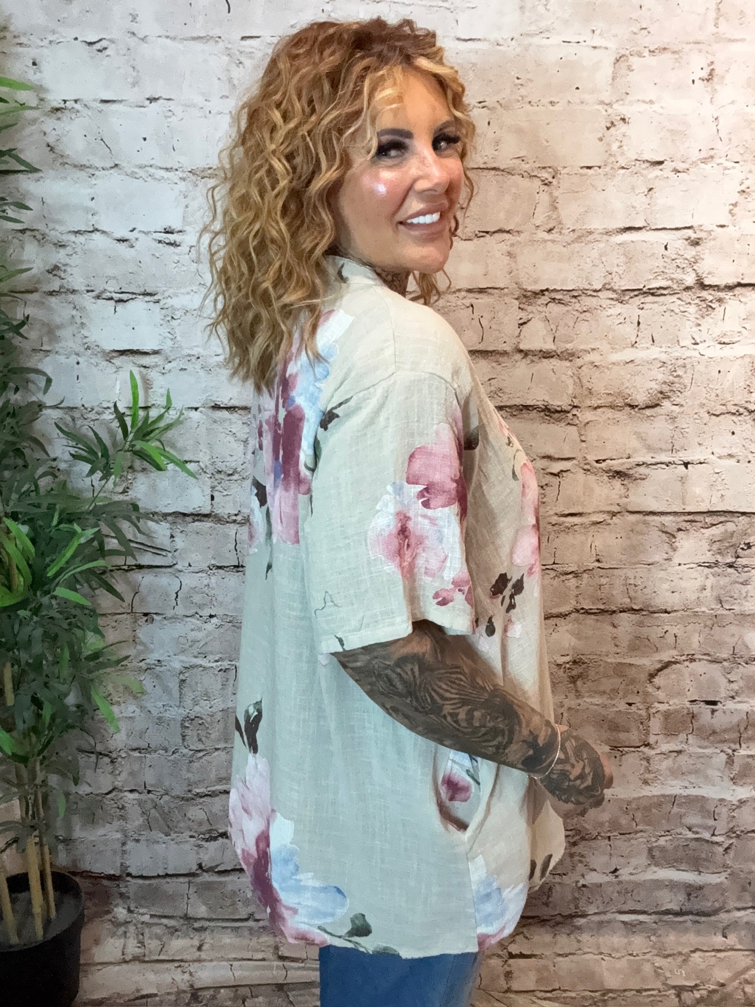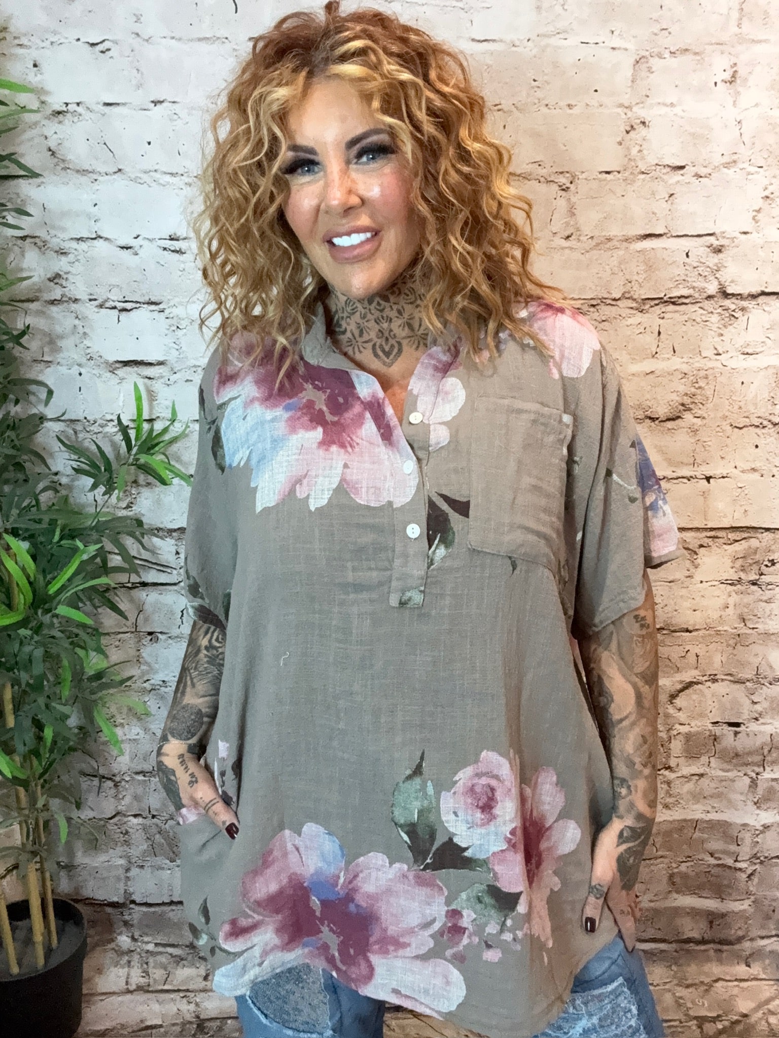 Designed with a smart 3 button-down front and a beautiful floral print, this blouse is a timeless addition to any wardrobe.