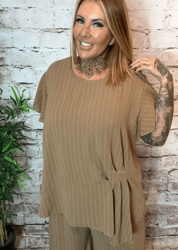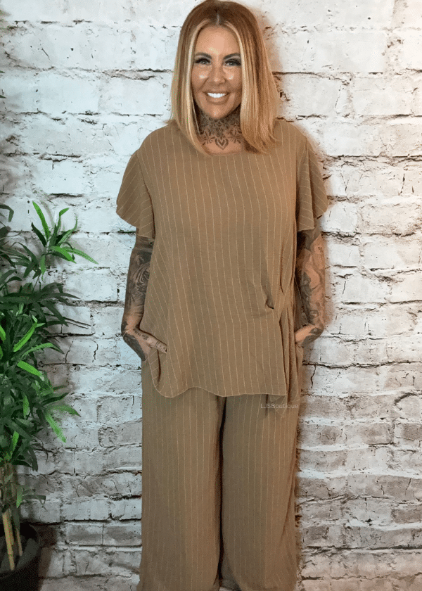 Make a bold yet effortless statement with the Leona 2-piece set, featuring a short sleeve top paired with matching wide leg trousers.