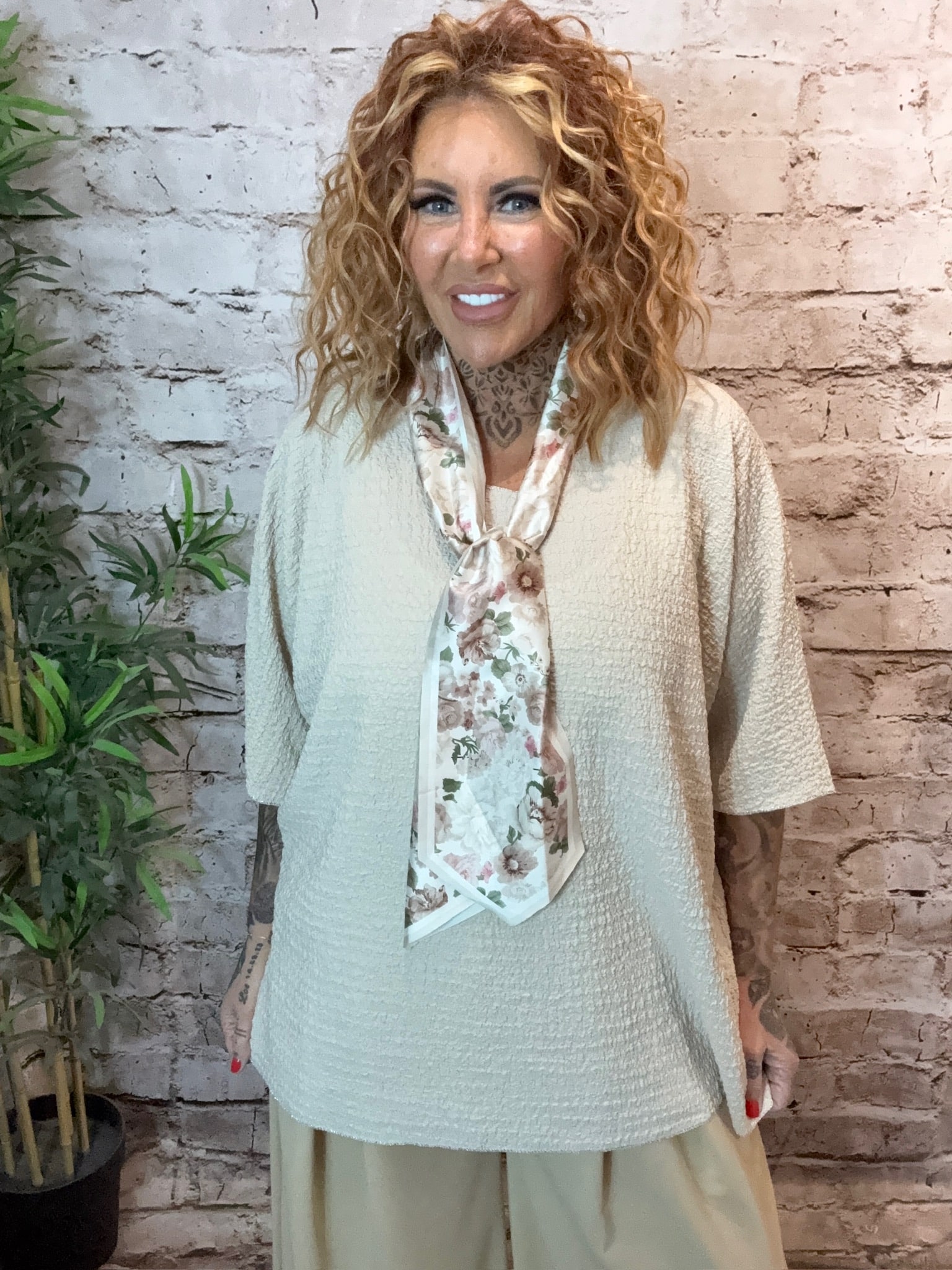 The Lia set features a beautifully lightweight top with a soft V-neckline, designed for comfort and effortless style.