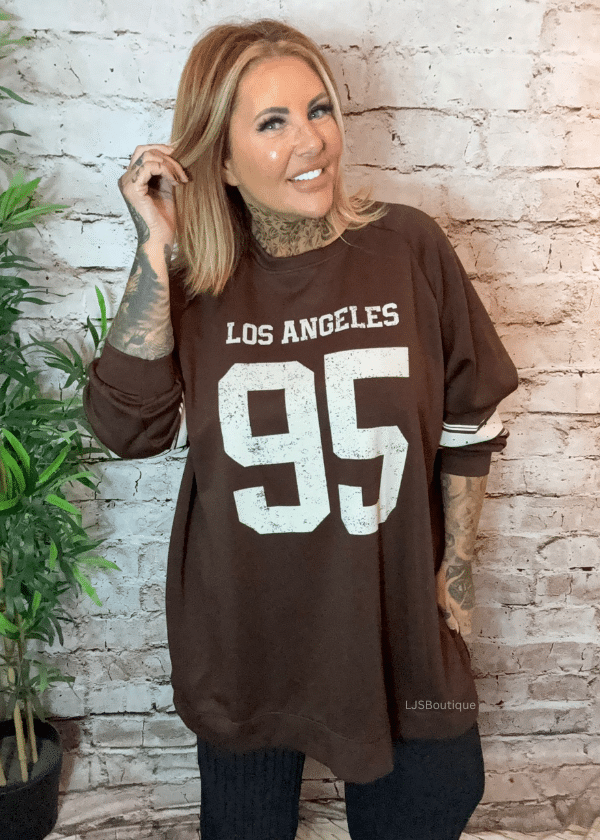 Introducing the Beautifully soft oversized Los Angeles sweater, with Eye-catching Logo.
