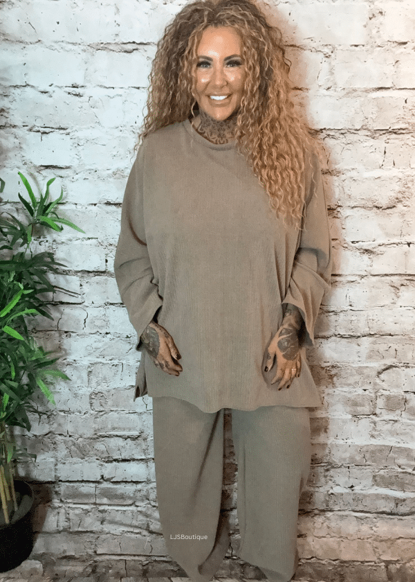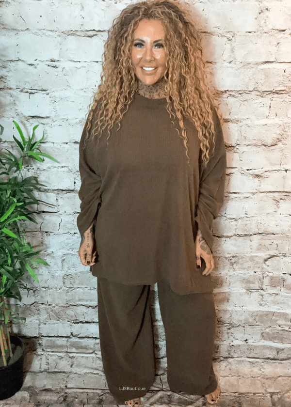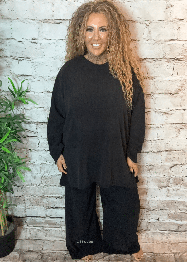 A complete and effortless outfit, the Marlow Set features a soft cord-effect long-sleeve top with a flattering hi-low hem,