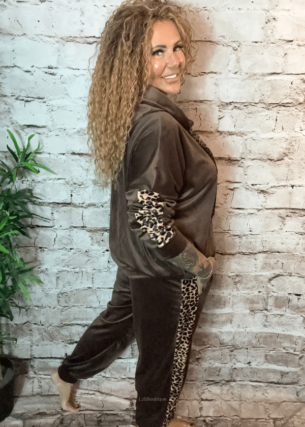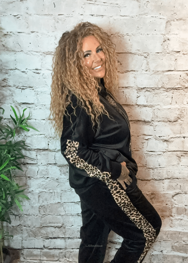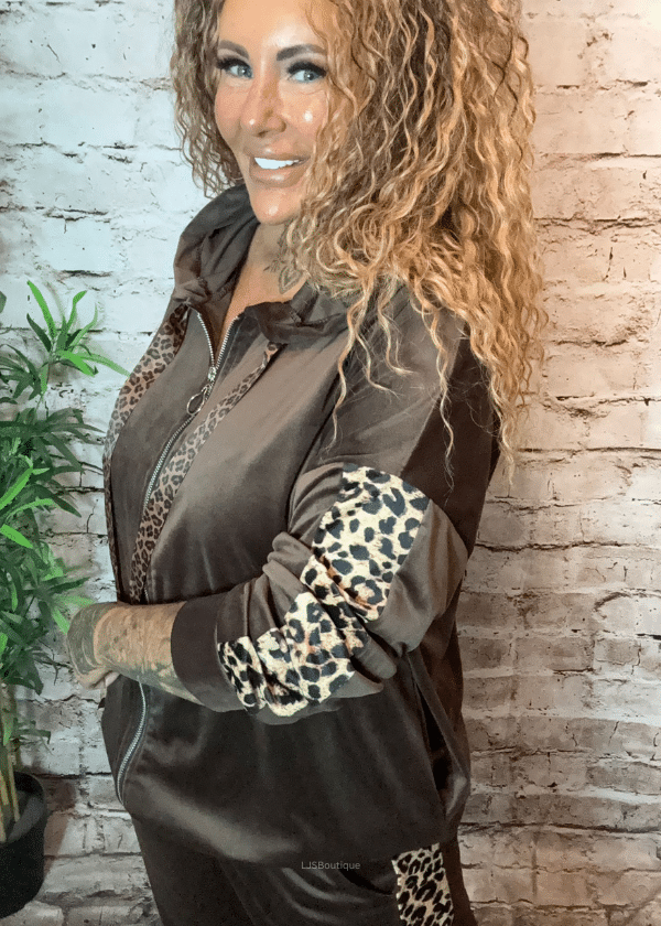 Crafted from a soft velour fabric with an eye-catching animal print, it’s designed for ultimate comfort and effortless style.