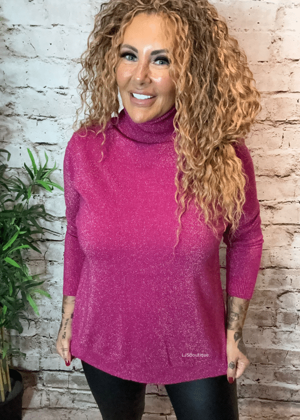 The Misha sparkle Polo Neck Soft Knit Jumper is lightweight and perfect for layering during colder weather.