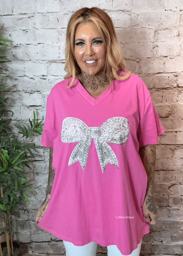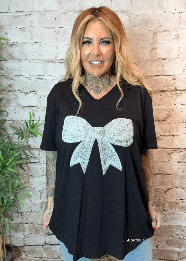Featuring a pretty bow print to the front, balanced with plain sleeves and a simple plain back, this top combines charm with effortless style.