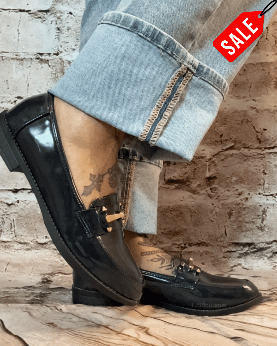 628 Navy blue Patent slip on loafers