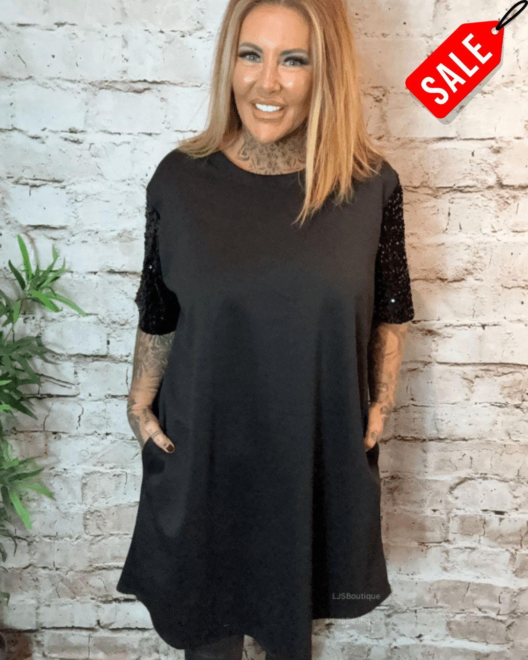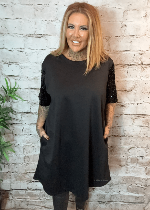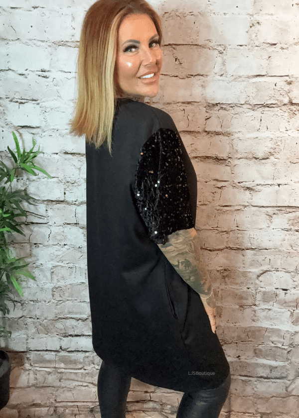 Featuring eye-catching sequin sleeves, Tallulah adds a touch of sparkle to your everyday looks, making it perfect for dressing up or keeping it casual with a glam twist.