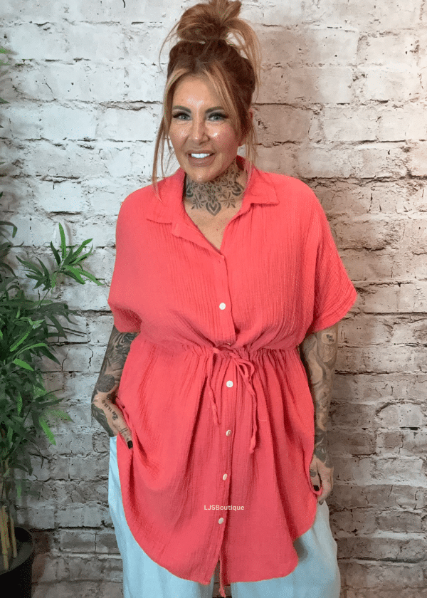 The Thelma shirt dress is designed to flatter, Featuring a tie waist for a flattering silhouette